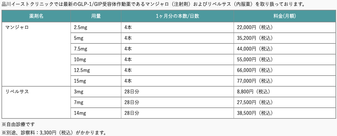 メディカルダイエットの料金