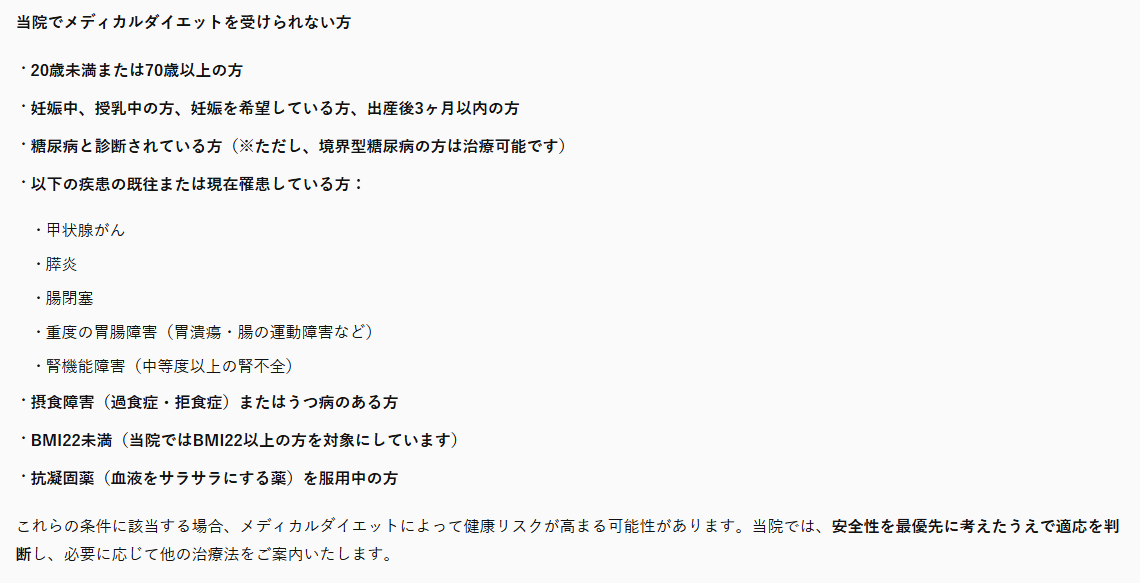 メディカルダイエットを受けられない方の基準